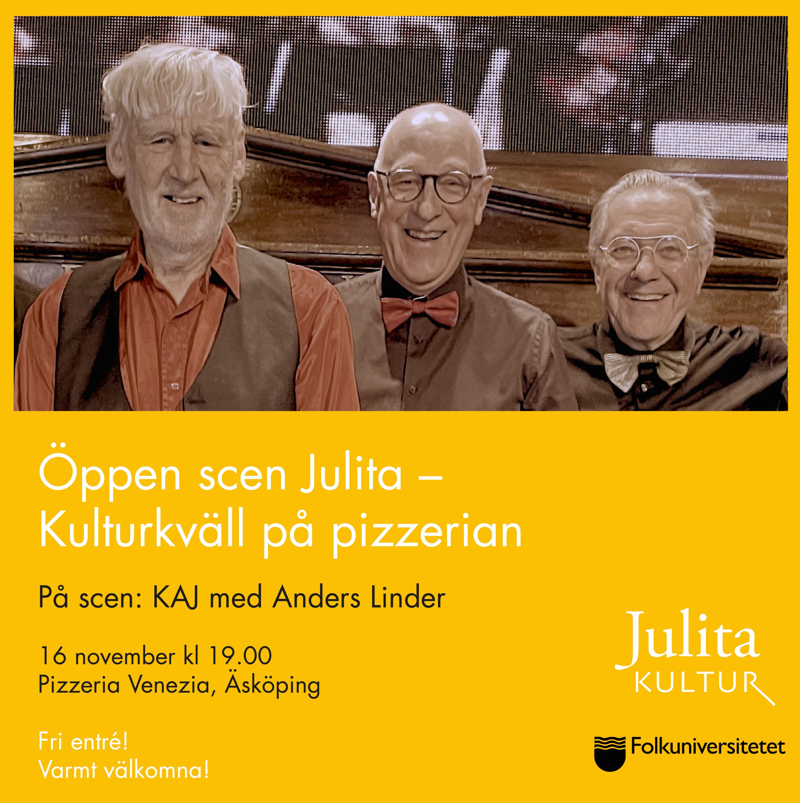 Välkomna tillbaka till kulturkvällen på pizzeria Venezia i Äsköping!